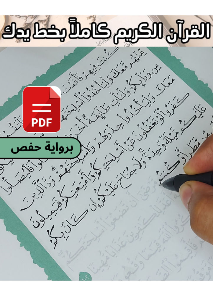 ✅ نص الآيات باهت قليلاً ليسمح لك بالكتابة فوقه بخط واضح.