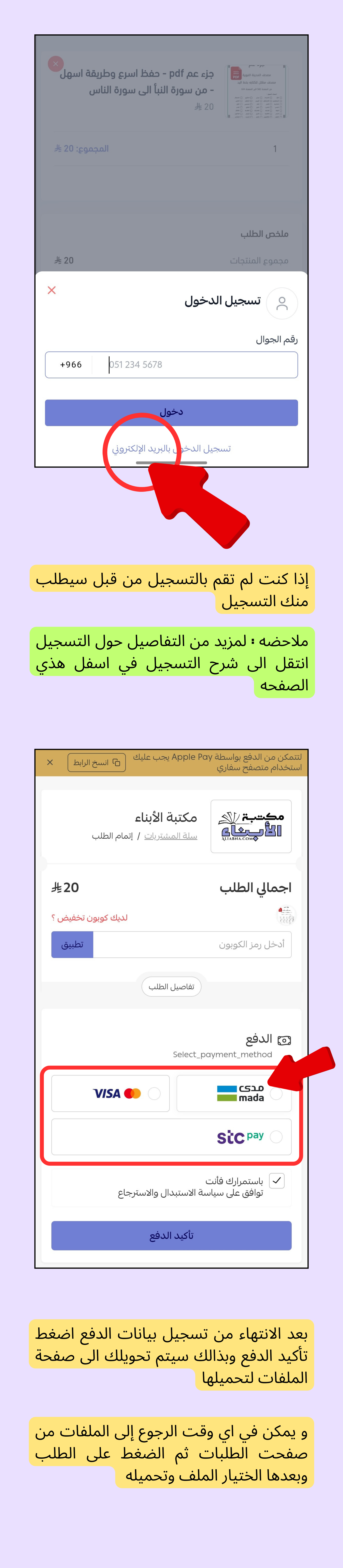 كيف التسجيل في الموقع والانتقال الى صفحت الملفات لتحميلها بعد الشراء